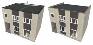 北海道版は通常のAIスケッチの部材に加え、道内で採用されることの多い無落雪屋根タイプを追加。スノーダクト屋根と片流れ三方パラペットなども選択できるようになった。このほか、窓の部材として樹脂サッシ窓を選択できる。