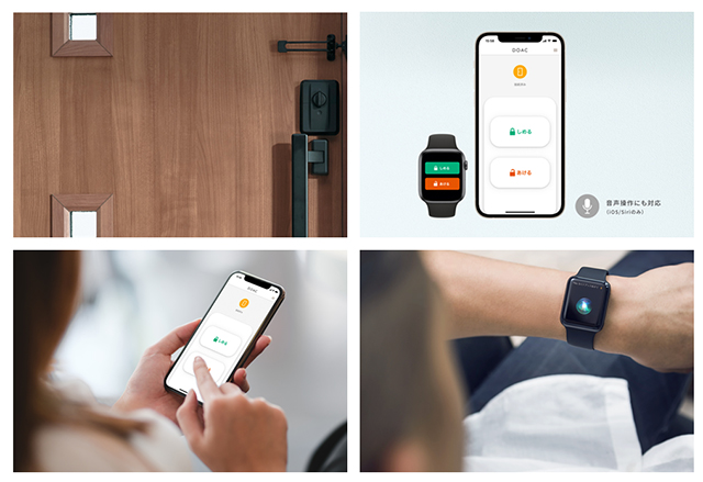 新機能の音声操作は「DOACアプリ」をインストールしたスマートフォンやApple Watchに「ドアック、開けて」「ドアック、閉めて」と話しかけるだけで鍵の施解錠、ドアの自動開閉ができる。