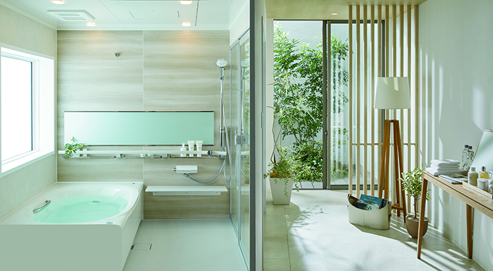 大きく変わった点は、浴槽派やシャワー派など入浴スタイルによってタイプを設定したこと。従来はグレードでタイプを分けていたので、顧客は価格によって選択していた。これからは好みの「お風呂の入り方」によってバスルームを選べるようになる。