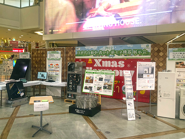 省エネルギーや新エネルギーに関する機器をPRする目的で2010年度から開催しているイベントで、今年度は昨年度に続いて電気自動車(EV)も展示した。