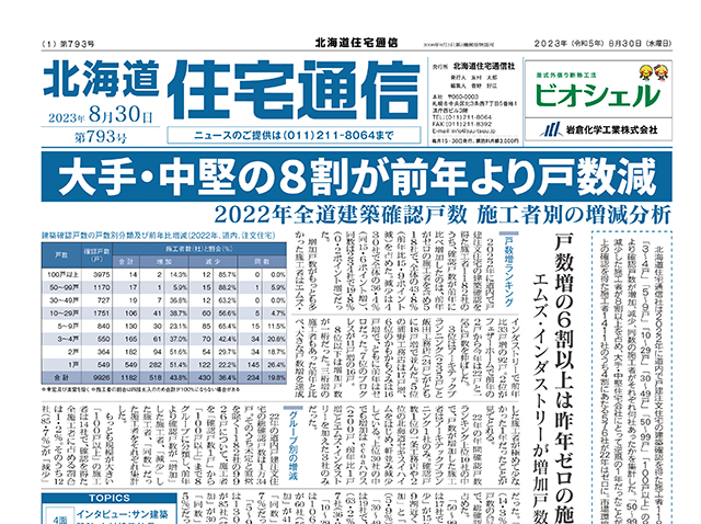 2023年8月30日、北海道住宅通信 第793号を発行しました。
