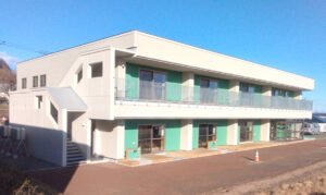 RC造2階建、延床面積947.82㎡。幼児施設の設計を数多く手掛ける横浜市のインテグラルデザインスタジオが設計、地元の鐘ヶ江建設、五十嵐建設、天内工務店の共同企業体が施工した。外壁と屋根は押出法ポリスチレンフォームⅢ種の外断熱と硬質吹付ウレタンフォームの内断熱を併用。開口部にはトリプルガラス樹脂サッシを使用している。