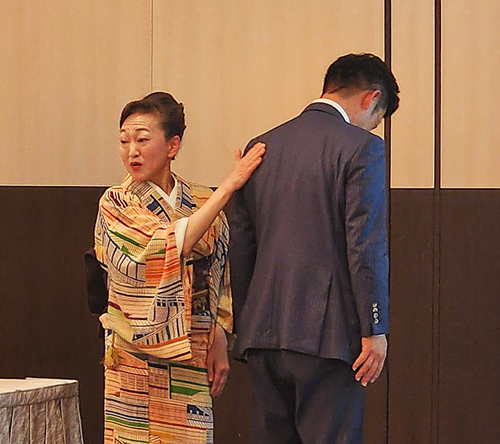 パッシブシステム研究会 第20回通常総会を開催 日本舞踊家・西崎鼓美氏が特別講演 イベント 2024/5/30 特別講師の西崎氏(写真左) NPO法人パッシブシステム研究会(福島明理事長)は5月10日、札幌市内のホテルで第20回通常総会を開催した。 2023年度事業活動報告、会計報告、監査報告および24年度活動計画、予算案を審議し、すべて全会一致で承認。また、今年度は役員改選年度で、審議により役員はすべて継続が承認された。 23年度はコロナ禍の一定の落ち着きもあり、対策を講じながらセミナーや大合宿を開催。そのほか、同研究会ホームページを全面リニューアルするなど、活動が進んだ年となった。