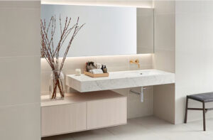 サンワカンパニー 「フィオレット」リニューアル 幅1㎜単位でオーダー可能に 住設商品 2024/6/15 ビアンコ、幅1650㎜、右寄せボウル 住宅設備機器と建築資材のインターネット販売を行うサンワカンパニー(大阪市)は、洗面台「フィオレット」をリニューアルし、6月3日に発売した。 フィオレットは、カウンター天板とボウルが一体となった継ぎ目の無いデザインで高級感があり、住宅から店舗、ホテルまで幅広く採用されている。 天板はクォーツを原材料にした人造大理石を採用。天然石の風合いや質感を持ちながら、キズや汚れに強い。
