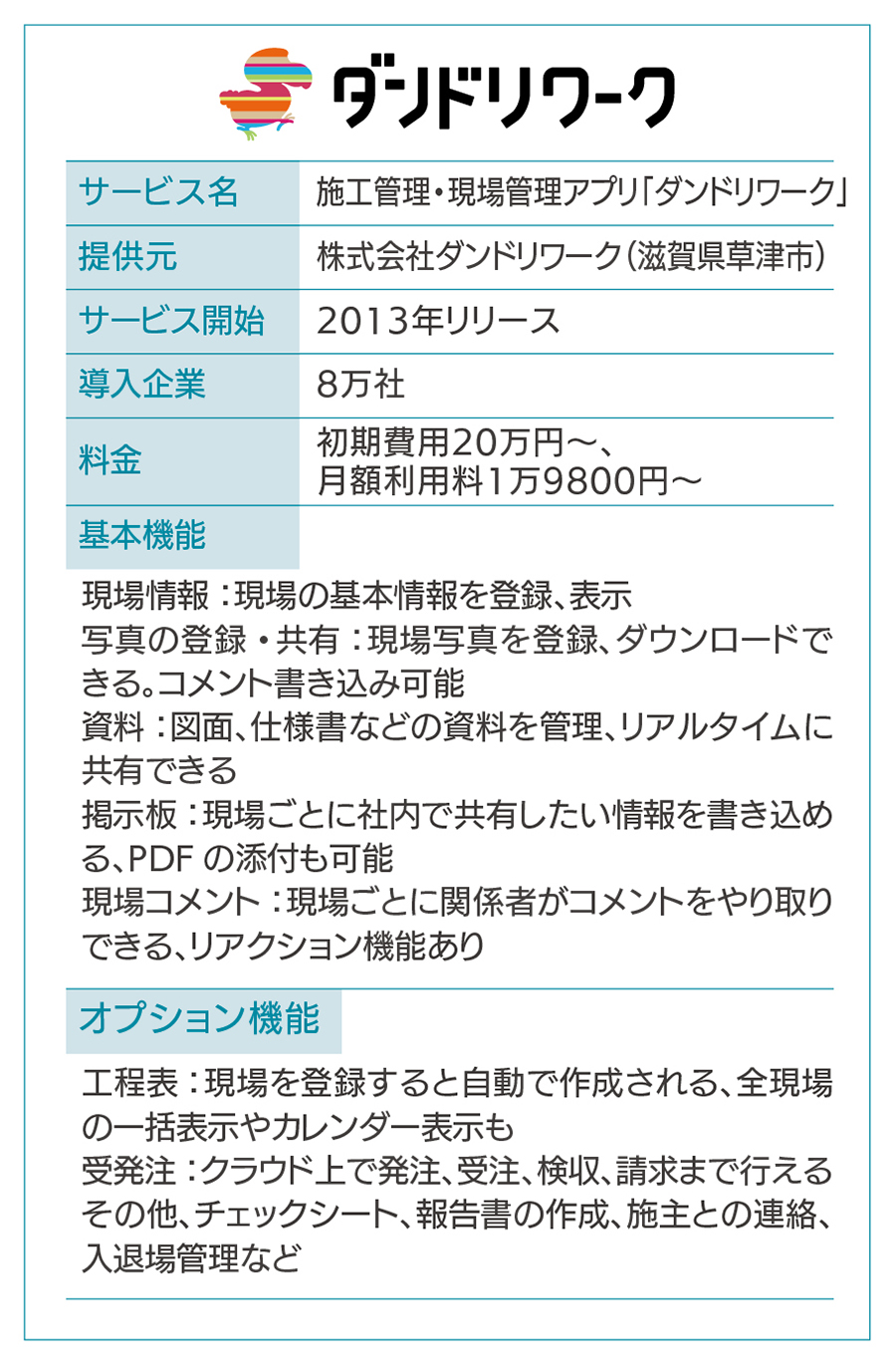 【特集】住宅業界のDX事例(デジタルトランスフォーメーション)⑤ 【ダンドリワーク】工程管理・現場作業共に精度が向上 情報・サービスサービス 2024/6/30 イネスホーム(札幌市) イネスホームは2018年からダンドリワークを使用している。 同社工事課長の水橋智宏氏は「あまりにも多機能すぎて社内で使える人が限られては本末転倒。工程管理と写真共有が目的だったので、あとはコストとのバランスで選んだ」と話した。 導入によって、個人でばらつきのあった工程表作成が標準化され、工程管理の精度が向上。写真での現場確認によって現場監督の移動時間が削減され、事務処理の遅れなどが減少した。