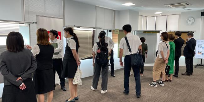 展示会リポート 「ソフィー」など新製品出揃う ニチベイ商品発表会「ネオフェスタ2024」 イベント 2024/8/15 展示商品の説明を受ける来場者 ニチベイ(東京都)は、商品発表会「ネオフェスタ2024」を7月30、31の両日、デ・アウネさっぽろで開催した。今年6月にモデルチェンジ、新柄・新色が発売されたロールスクリーン「ソフィ―」やバーチカルブラインド「アルペジオ」などの他、札幌会場のセレクト品やホテル・コントラクトユース向けの商品などを展示した。