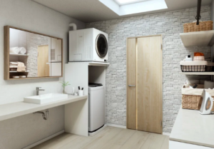 大建工業(大阪市)は9月24日、リンナイ(名古屋市)製の家庭用ガス衣類乾燥機「乾太くん」設置用の木製収納ユニット「かわいたな」を発売した。