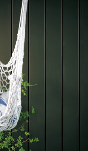 鋼板成形品として需要のある角波成形版のデザインを金属サイディングとして商品化し、フラットな美観や職人の技術レベルに頼らない均一な施工性を実現した縦張りの商品。趣味を楽しむワイルドなガレージ風デザインや工場ファザードをそのまま住宅に取り入れたような「むき出し感」や「無機質感」を醸し出している。