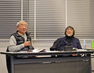 秋山東一・井端明男特別講演会 工務店は「スタンダード住宅」を目指すべき セミナー 2024/12/15 対談する秋山氏(左)と井端氏 工務店コンサルティングのリードスクエア(名古屋市)は12月5日、「秋山東一・井端明男特別講演会」を札幌市内で開催した。工務店の設計者ら45人が参加した。 秋山氏は、OMソーラー協会(現OMソーラー、浜松市)のシステム住宅「フォルクスハウス」を開発したことで知られる。その進化系である「Be-h@us(ビーハウス)」をオープンソース化した。NPO法人BE-WORKSを主宰。