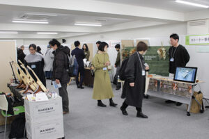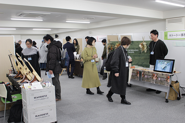 道産木材ブランドで販路拡大 道主催 HOKKAIDO WOOD展 イベント 2025/2/15 賑わう会場 道林業木材課は1月27、28の両日、「HOKKAIDO WOOD展」を札幌市内で開催した。道産木材製品を取り扱う事業者同士の交流と販路の拡大に向けたイベントで、初開催した昨年に続き2回目。道産木材に関心のある企業から一般ユーザーまで、2日間で558人が来場した。HOKKAIDO WOODの登録メンバーは、企業、団体、個人を合わせて400にのぼる。広がりを見せる道産木材ブランド化の取り組みを取材した。