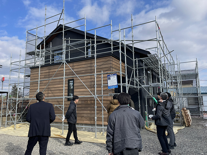 1日目は、バスツアー形式で建築中や竣工後の現場見学会を開催し、49人が参加。岡本建設(十勝管内幕別町)とウッドライフ(帯広市)、水野建設(十勝管内音更町)が手掛ける帯広市内と近郊の6物件を視察した。