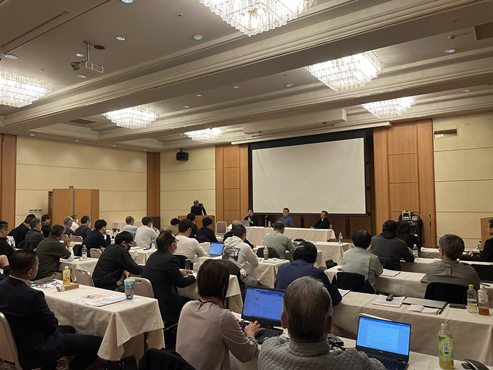 2日目は、帯広市内のホテルで勉強会を開催。テーマは①働き方改革の成果と課題(うまくいった点と今後の改善点)②高断熱性能が当たり前になった今、差別化を図る次の一手は③よくあるトラブルと解決が難しい問題、契約書に記載すべき事項――の三つ。北海道住宅新聞社の白井康永社長が進行を務め、シノザキ建築事務所(札幌市)の篠崎廣和社長と北海道ハウジング(旭川市)の森木日出男社長、水野建設の水野光義社長がそれぞれ自社の現状や自身の見解を発表した。