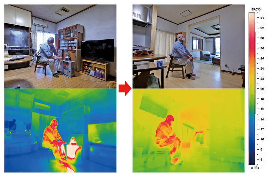効果の「見える化」で断熱改修促進 住宅性能向上DXコンソーシアムが発表会 情報・サービス 2025/5/15 断熱改修の効果を見える化するサーモ画像(前研究室の発表資料より) 東京大大学院の前真之准教授の研究室とアンドパッド(東京都)、新建新聞社(長野市)、YKK AP(東京都)が共同研究を行っている「住宅性能向上DXコンソーシアム」は4月17日、オンラインで第3回研究発表会を開いた。主要テーマとしてきた既存住宅の性能向上改修について前氏は直近の研究成果を総括し、「最強の気付きツール」である赤外線サーモグラフィーカメラで断熱改修の効果を見える化しながら消費者を促していく必要性を強調した。