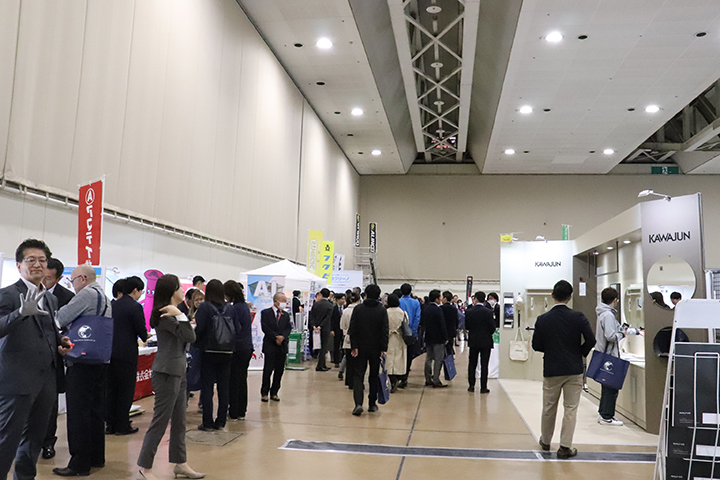 キムラ「北海道ビルダーズショー」 「先をゆく提案」をアピール イベント 2025/5/15 木村社長(左端)らによるテープカット 賑わう会場 キムラ(札幌市)は4月23、24の2日間、アクセスサッポロ(札幌市白石区流通センター4丁目)で「2025北海道ビルダーズショー」を開催した。メインテーマは「ご要望の、一歩先へ」。住設・建材商品の展示会として道内最大規模で、今回で52回目となる。 エクステリア・外構資材をはじめ、住設や建材、工具メーカーなど約100社が出展。キッチンカーも華を添え、2日間で約3100人が来場した。