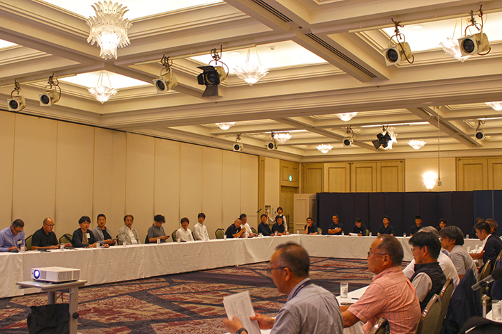 その後、札幌市内のホテルで研修・意見交換会を実施。道ビルダーズ協会会員工務店の大工職人など28人が加わり、JBN参加者と意見を交わした。