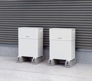 主要メーカーの最新システムラインアップ② シャープ 住宅用エネルギーソリューションシステム「Eeeコネクト」 住設商品 2025/8/15 AI制御のクラウド蓄電池で自家消費を最適化 屋外設置のクラウド蓄電池 シャープ(堺市)は太陽光発電パネル、パワーコンディショナー、蓄電池、V2H、HEMSを連携したトータルソリューション「Eeeコネクト」を提案。独自のAI制御で自動的に蓄電池の運転を最適化し、生み出した電気の自家消費率を向上させる。パワコンはハイブリッド型とトライブリッド型の2機種があり、最初は太陽光発電のみ設置して後から蓄電池やEVを連携することができる。屋外設置で海岸近くでも設置できる重塩害対応。