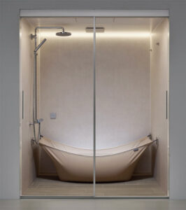 バストープは、折りたためる布製の浴槽を備えた新コンセプトの浴室空間で、昨年11月の発売以来、反響を呼んでいる。