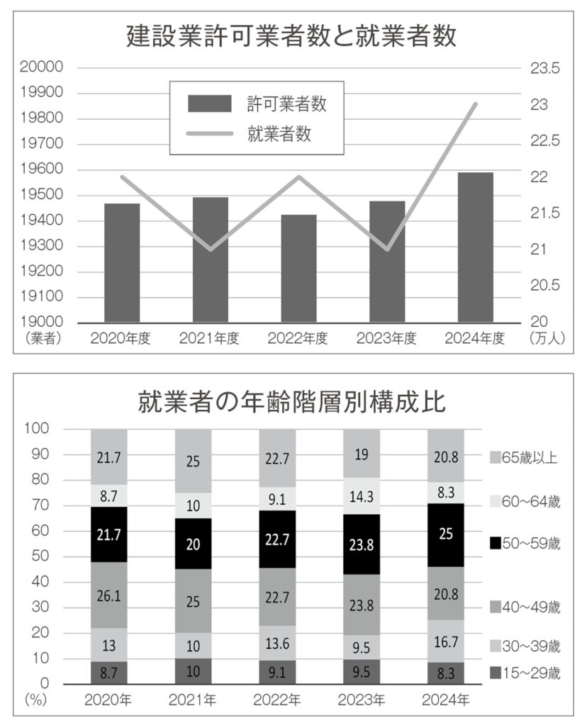 道はこのほど、2024年度版の「北海道における建設業の概況」を取りまとめ、公表した。道内建設業は、建設投資額が公共工事と民間工事のいずれも前年度より増加した。