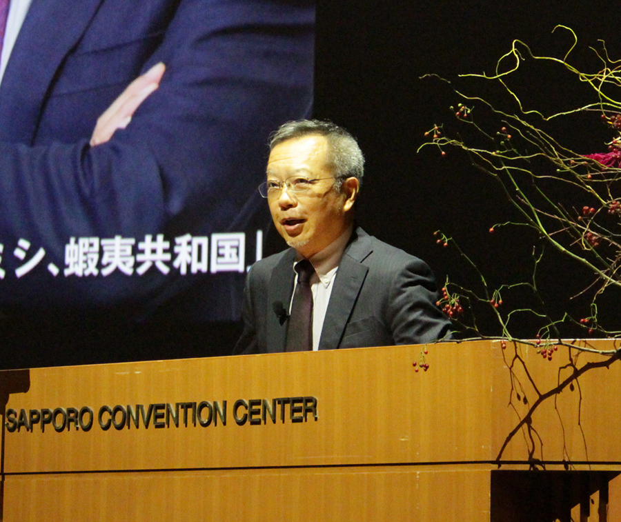 會澤高圧が創業90周年記念講演会 茂木誠氏が日本民族の歴史を解説 セミナー 2025/11/15 講演する茂木氏 會澤高圧コンクリート(苫小牧市)は10月27日、札幌市内で創業90周年記念講演会を開催した。 会場の札幌コンベンションセンター大ホールには、同社の取引先など約1700人が来場し、約700人がオンラインで視聴した。